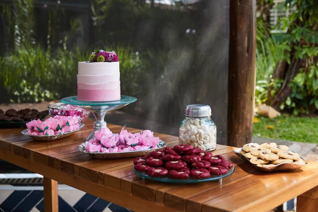A festa foi animada por música e dança, e contou com um cardápio especial preparado pelo restaurante Manzuá. No menu, o melhor dos frutos do mar para os convidados, proporcionando uma experiência gastronômica única. O bolo foi assinado por Mari Doces Criativos, doces da Sweet Cake e os mini cookies da American Cookies, da própria aniversariante que é franqueada da marca com quiosque no Pontão. Os convidados também puderam aproveitar a vista privilegiada para o Lago Paranoá.