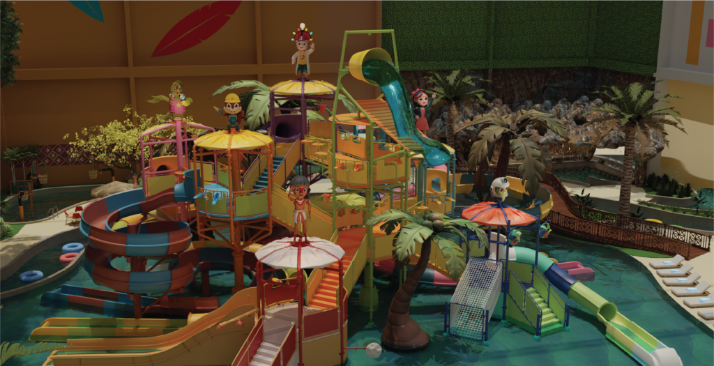 A grande novidade do Tauá Resort Alexânia é o Aquapark Indoor, o primeiro parque aquático tematizado e climatizado do Centro-Oeste. O Aquapark é um espaço imersivo e vibrante, concebido estrategicamente como o lar dos Taualegres. No parque, esses personagens ganham vida por meio de esculturas gigantes e cada atração foi cuidadosamente pensada para refletir sua personalidade e história. Esse cenário temático envolvente promove uma experiência diferenciada, integrando diversão e fantasia. Com uma arquitetura lúdica e um ambiente acolhedor, o espaço convida as famílias a embarcarem em uma jornada de descoberta e encantamento.