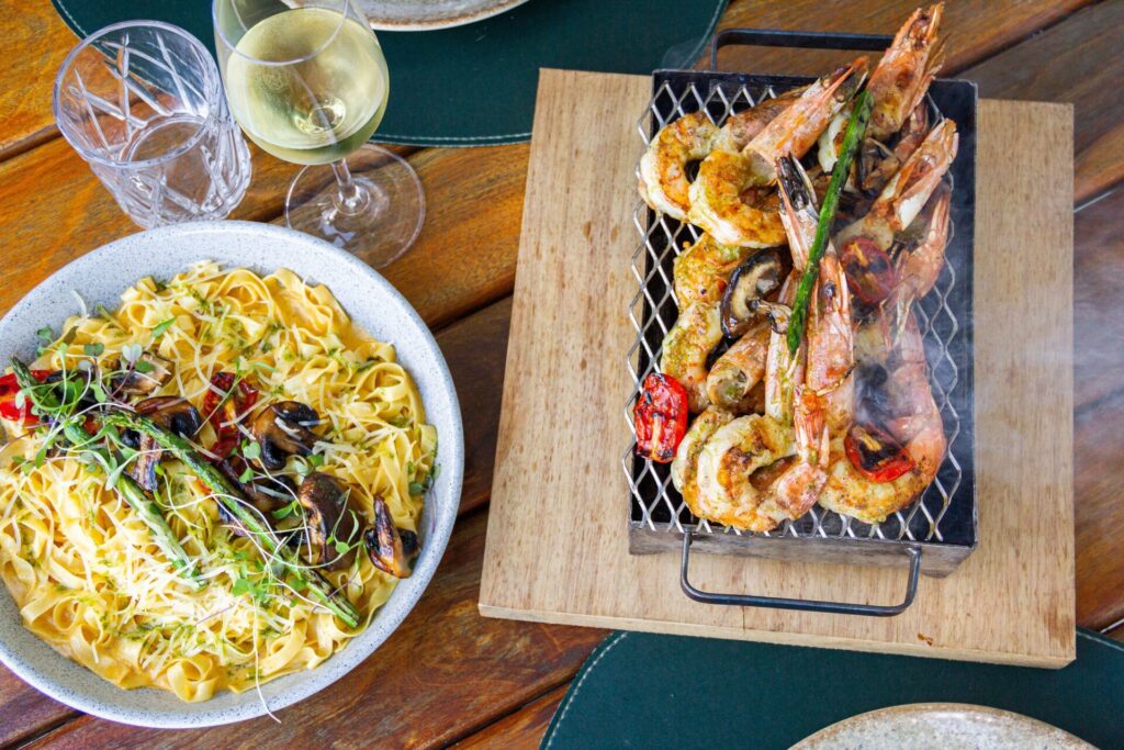 O Camaron na Brasa (camarão pistola na brasa, com chimichurri cítrico e fettuccine ao molho curry e cogumelos) está disponível de 01 a 09 de abril, no almoço e no jantar, ao valor de R$280,00 para duas pessoas.
