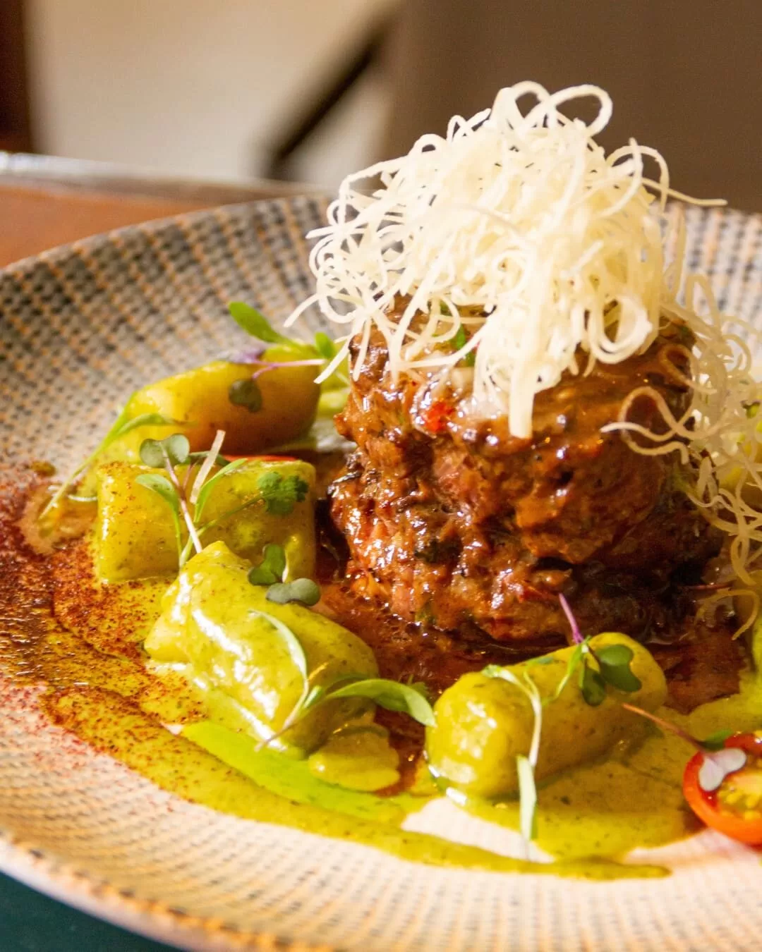 No Taypá, a sugestão do chef Marco Espinoza é o Lomaso, um prato sofisticado que combina filé mignon em molho de redução de vinho tinto e chimichurri com funghi cremoso, servido com nhoques de mandioca.