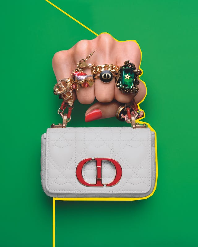 Disponível em preto, vermelho e latte, bem como uma paleta de tons suaves e ensolarados – incluindo rose des vents, azul celeste e verde menta ou tundra – essas micro-bolsas celebram algumas das cores favoritas do costureiro fundador. Como surpresa final, uma reinterpretação com o tema do motivo cannage adorna as bolsas Dior Caro e Lady Dior, sendo esta última também revelada em uma versão delicadamente bordada com pérolas.