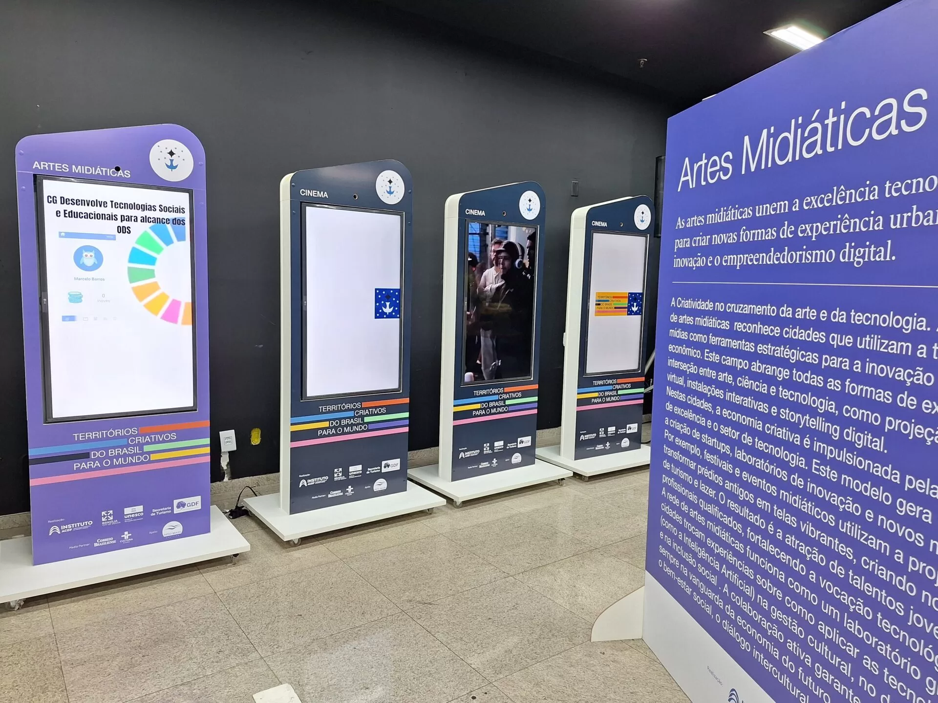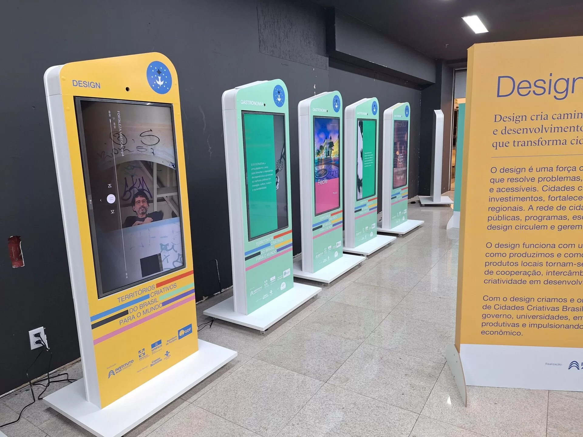 O espaço apresenta painéis e vídeos que destacam as 15 cidades do país integrantes da Rede de Cidades Criativas da UNESCO, celebrando suas vocações em áreas como gastronomia, design, artesanato, cinema, música e literatura. O visitante pode explorar conteúdos imersivos que revelam como cada território transforma identidade cultural em potência econômica, fortalecendo conexões empreendedoras e ampliando a visibilidade do Brasil no mundo.