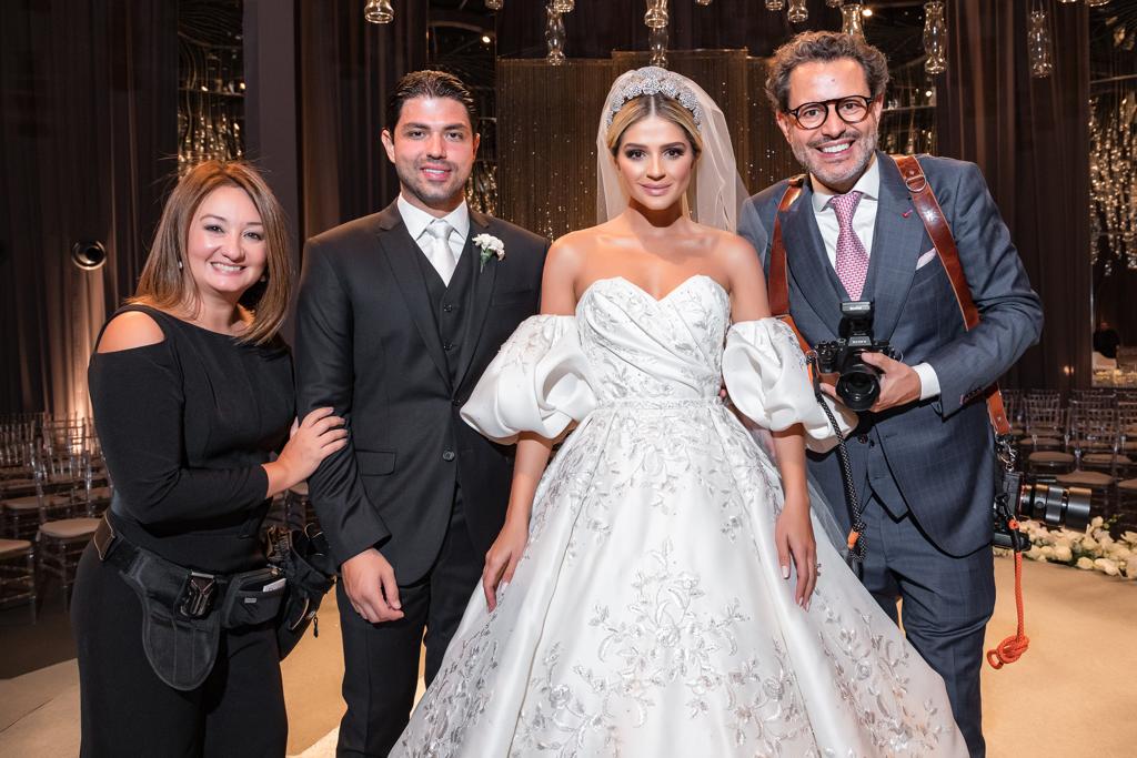 O casal com os fotógrafos responsáveis pelos cliques, Anna Quast e Ricky Arruda, que registraram o casamento do DJ Alok e da médica Romana Novais aos pés do Cristo Redentor