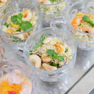 O menu ficou a cargo da renomada chef Renata La Porta, que preparou um buffet exclusivo com pratos sofisticados e ingredientes de alta qualidade. A experiência gastronômica foi harmonizada com uma cuidadosa seleção de chás, vinhos brancos e um drink especial, o Chandon Spritz Garden, proporcionando aos convidados uma verdadeira viagem de sabores.