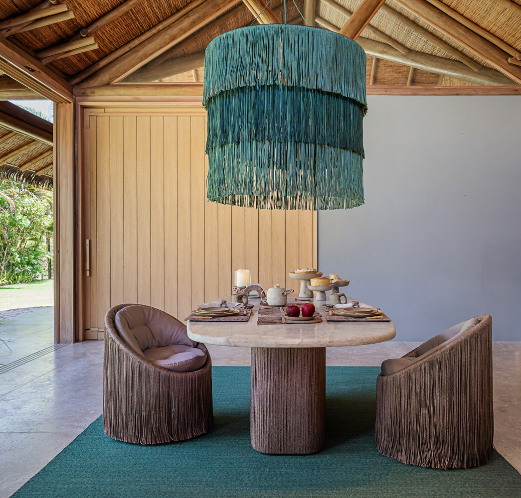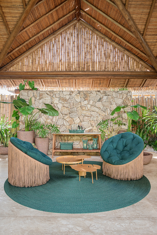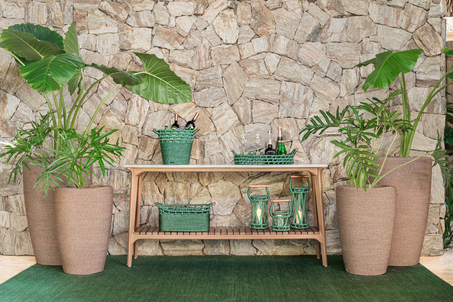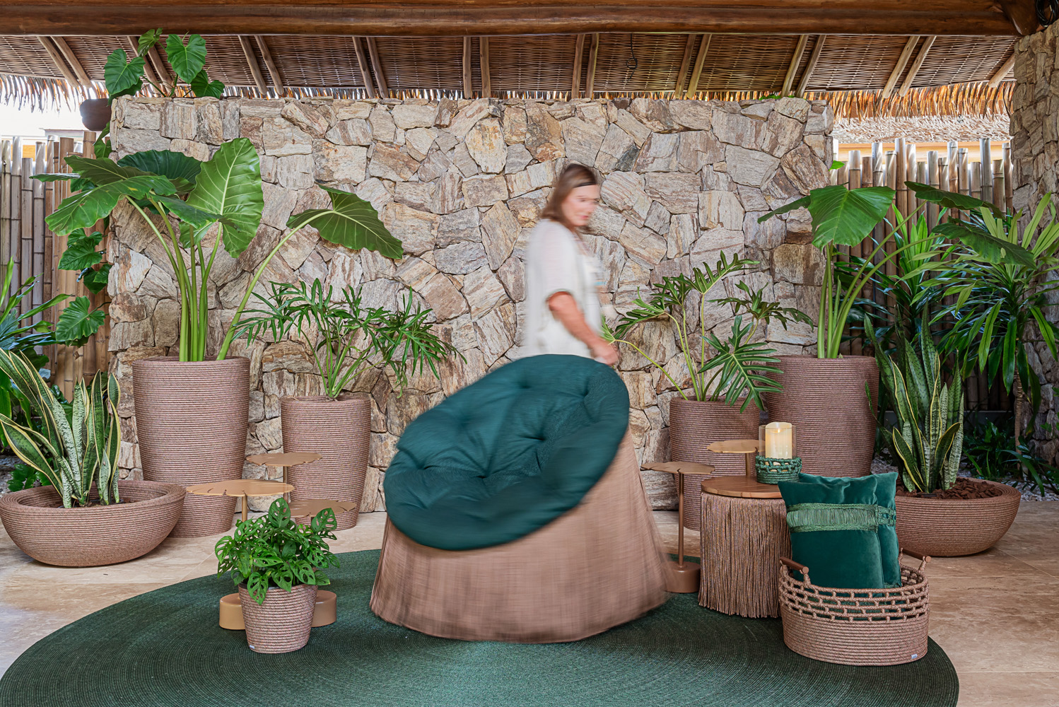 Duas peças assinadas por designers brasileiros também têm destaque no evento, incluindo o Bowl Imperial, desenho de Rodrigo Ambrosio, confeccionado em alumínio e cordas náuticas, material desenvolvido pela marca e fabricado na Bahia. Além dessas, a poltrona Serelepe também faz parte da programação, com projeto de Julia Tainá, apoiada pelo projeto Brazilian Furniture e que já foi apresentada em Nova York e Milão. Para Julia, a poltrona é tanto uma declaração de estilo quanto uma ode à simplicidade e ao conforto encontrados na natureza. “Assim como o Serelepe [roedor endêmico da América do Sul], que percorre as árvores com agilidade e graça, a poltrona captura esse movimento em suas formas fluidas e na experiência de relaxamento que proporciona”, afirma Julia.
