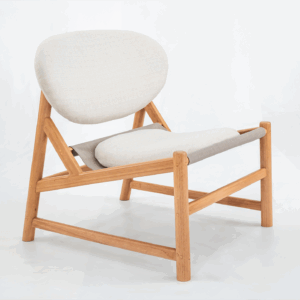 A poltrona Serelepe é inspirada em um pequeno roedor sul-americano, capturando a sensação de movimento com formas fluídas.
