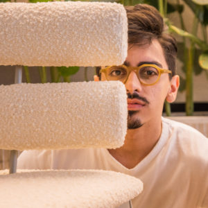 “A peça é a personificação do que é precioso em uma cadeira. ergonomia, estética arrojada e uma alta entrega de design. Para a criação, me inspirei na Antonella, uma spitz alemã. A estética da peça carrega características físicas, comportamento e personalidade dela. O nome “Tonton” vem do apelido carinhoso de como ela é chamada. O encosto em pele de carneiro ou até mesmo boucle, traz a ideia do pelo cheio e robusto, já o assento em formato triangular vem da característica física do focinho e as três pernas da cadeira a deixam com uma estética única, autêntica e muito “maluquinha” fazendo alusão de como a Antonella é”, revela Ismael Ricardo.