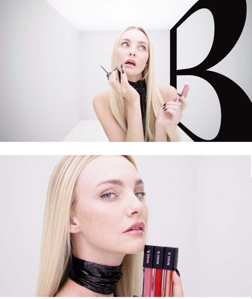 Em filme idealizado pela AlmapBBDO e dirigido por Giovanni Bianco, a modelo aparece experimentando os diferentes batons, mostrando as funcionalidades deles e como a acompanham em diferentes produções e momentos. Com o filme, Make B. quer despertar todos os lados de uma única mulher.