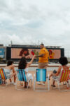 Todos chegaram no local preparado com cadeiras de praia, pipocas personalizadas, sucos e de repente começou a história “Era Uma Vez” com os personagens Toyszim e Amandacaru – personagem criado para Amanda depois de uma viagem do casal ao nordeste com passagem pelo sertão do Cariri onde existe o Cacto Mandacaru que as flores só abrem a noite.