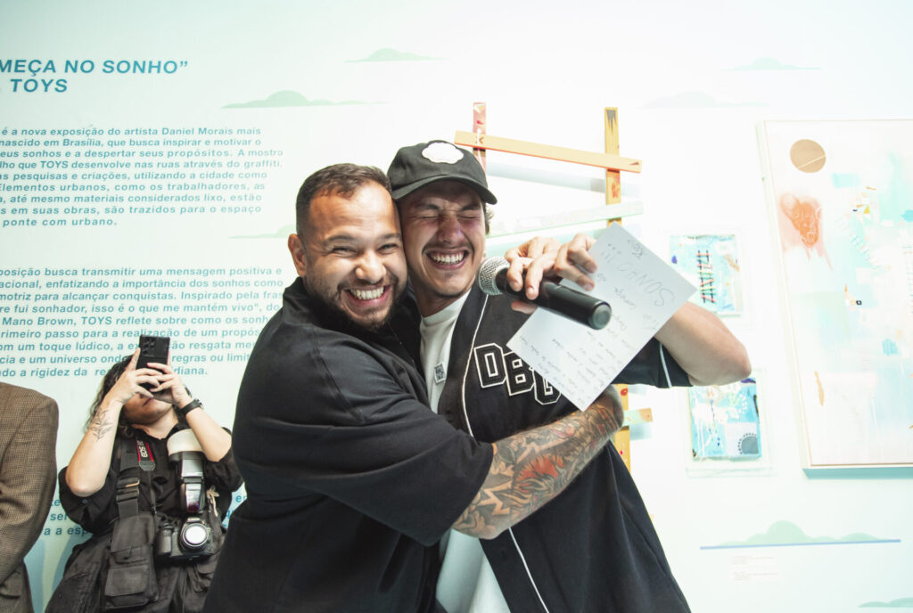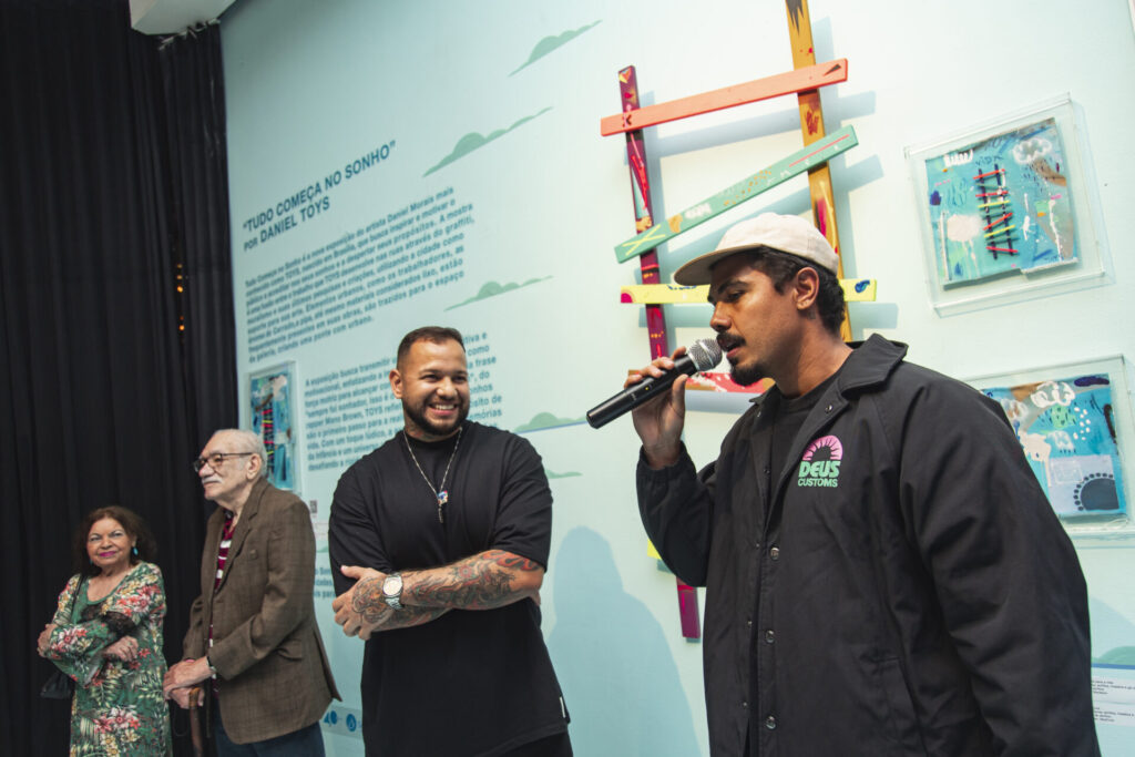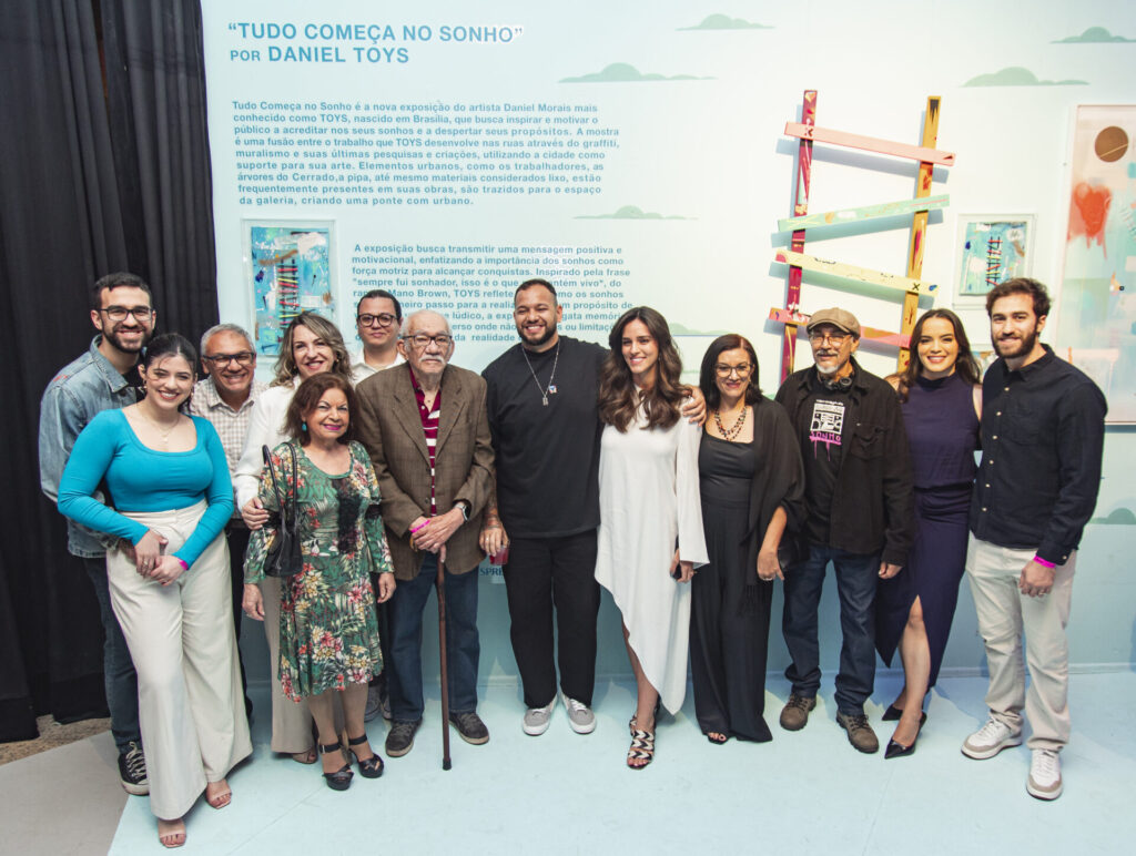 O artista Daniel Morais, mais conhecido como Toys — renomado por seus grafites e murais —, inaugurou a exposição autoral “Tudo Começa no Sonho” na última quarta-feira (21), com um evento para convidados no Mezanino da Torre de TV. Entre os cerca de 100 convidados estiveram amigos, clientes, imprensa e pessoas do mercado.
