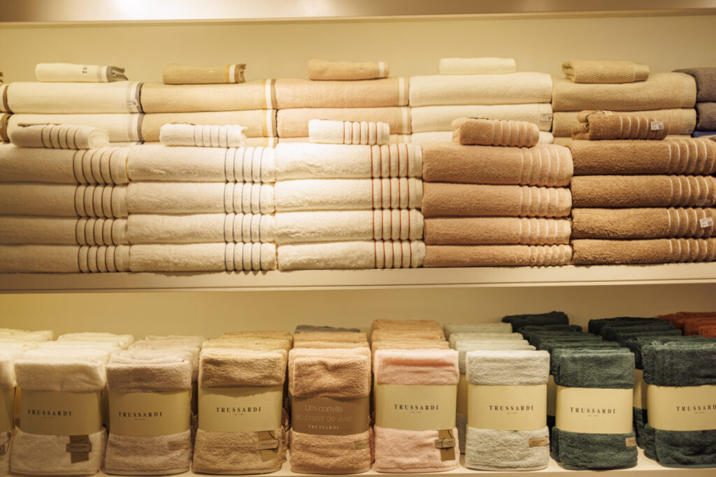 A linha incorpora os ícones arquitetônicos, vinhedos e paisagens naturais exuberantes da região. A coleção exclusiva para cama da Trussardi apresenta fronhas, colchas, almofadas, rolinhos, um jogo completo de cama, entre outros artigos que capturam a leveza e tranquilidade que emergem da própria natureza, acompanhada por melodias suaves que se harmonizam com o mar da Ligúria.