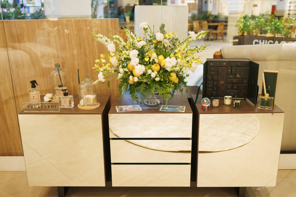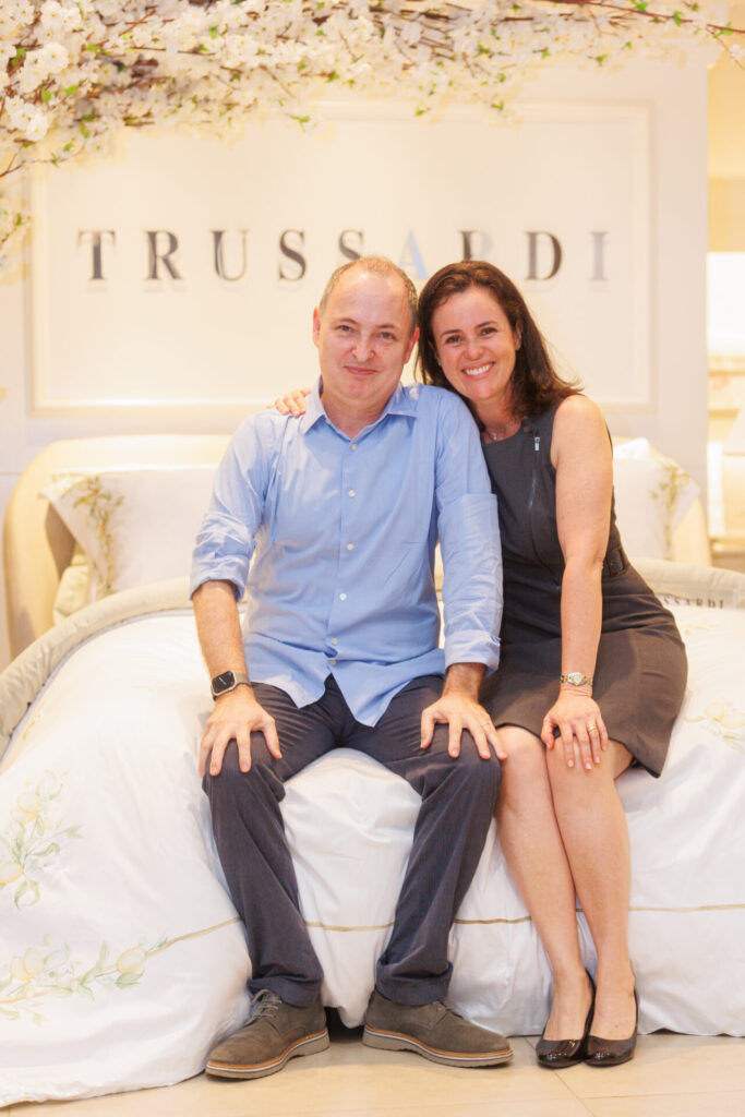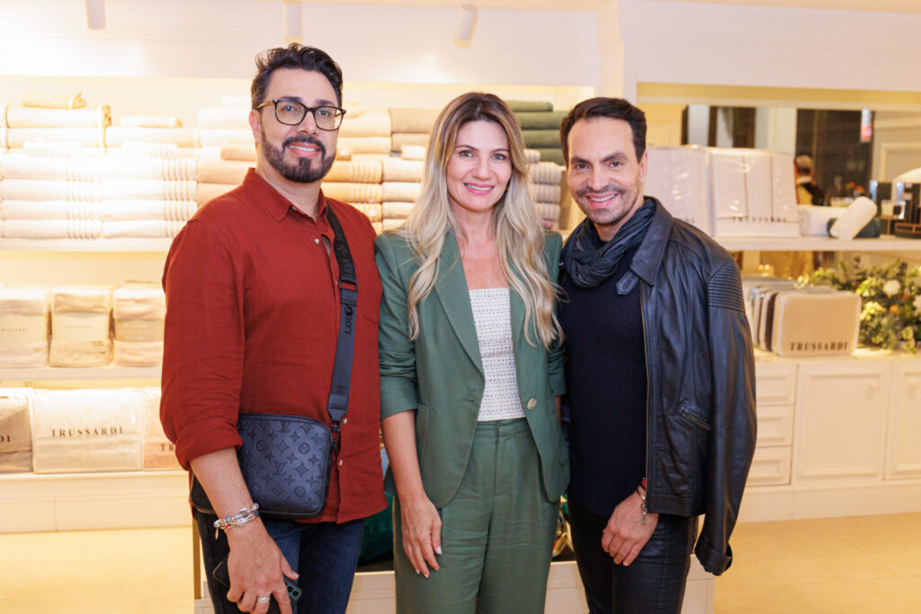 A Trussardi, marca de alfaiataria especializada em enxovais de cama e banho, lançou, na última quarta-feira (30), em evento exclusivo para convidados, a nova coleção, Dolce Riviera, inspirada na atmosfera mágica da Riviera italiana. O evento aconteceu na loja da Trussardi do CasaPark, localizada no térreo do shopping, e reuniu cerca de 50 convidados, que foram recebidos pelos representantes da Trussardi, o proprietário, Sandro Vilardo e sua esposa, Andréia Vilardo; a supervisora grupo Blumenau, Kelma Paiva; a representante da Trussardi, Lillian Rodrigues e a supervisora comercial industrial, Ana Caroline. A noite contou com drinks, espumantes e buffet volante mediterrâneo por Milena Cabral Eventos.