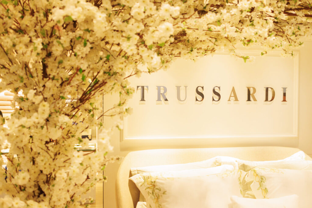 Além disso, a Trussardi aposta no jogo de cama Frezzano, com uma fronha de cetim 1000 fios, inspirada nos detalhes das cordas das embarcações ancoradas nas vilas de Cinque Terre, e a textura bordada das peças Riviera, em cetim 600 fios, que evoca o desenho das rochas sobre as quais as casas são construídas. A peça também é composta por bordados feitos à mão.