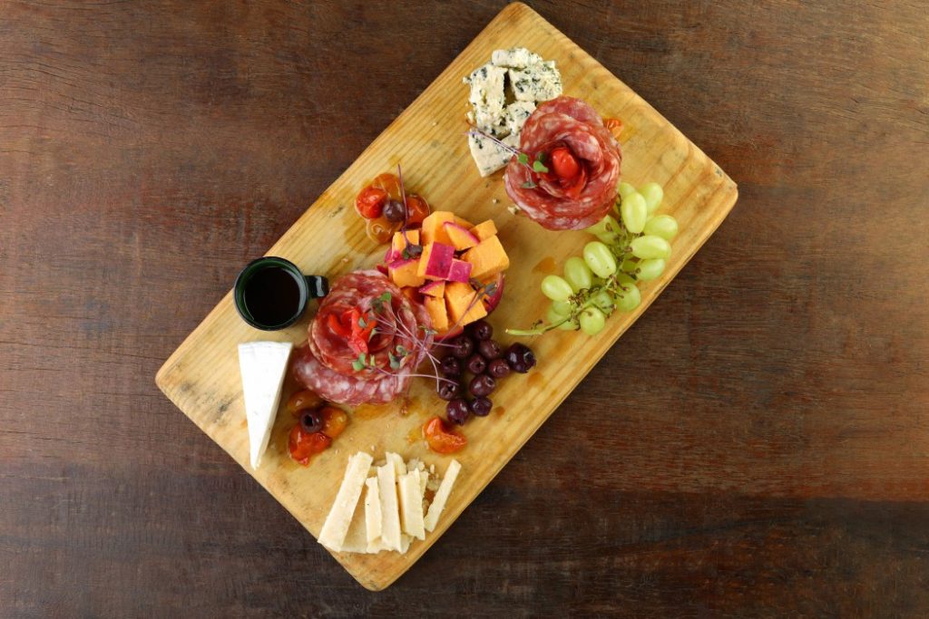 Tábua de frios: com queijos escolhidos a dedo – Brie, Gorgonzola, Queijo do Reino, Parmesão. E para finalizar saborosas azeitonas pretas, uvas verdes. R$ 95,00.