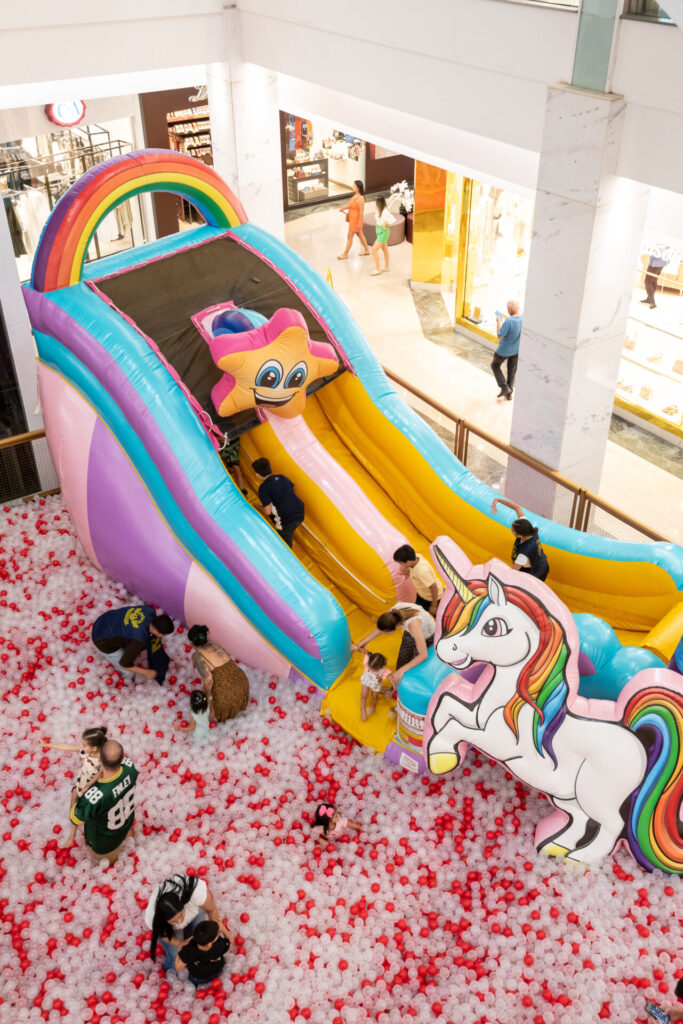 Um mundo mágico atrás do arco íris, com cheiro de algodão doce e toda a fofura do mundo, essa é a atmosfera que o público pode esperar com a atração Unicórnio by Magic Games que, até o dia 13 de outubro, promete agitar a criançada e suas famílias com muitas aventuras no Taguatinga Shopping (TGS). São mais de 150 mil bolinhas na Praça Central (Piso 1) e quatro espaços para transportar qualquer um para o mundo dos unicórnios.