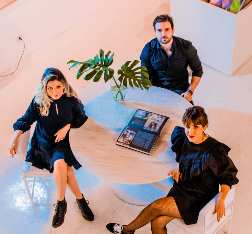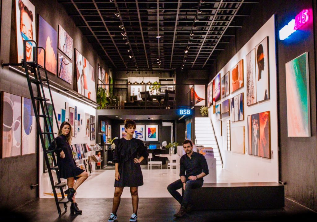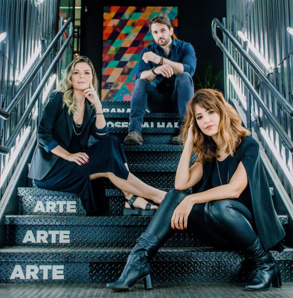 Sol Barreto, Priscila Botelho e César Santos na galeria do shopping casapark