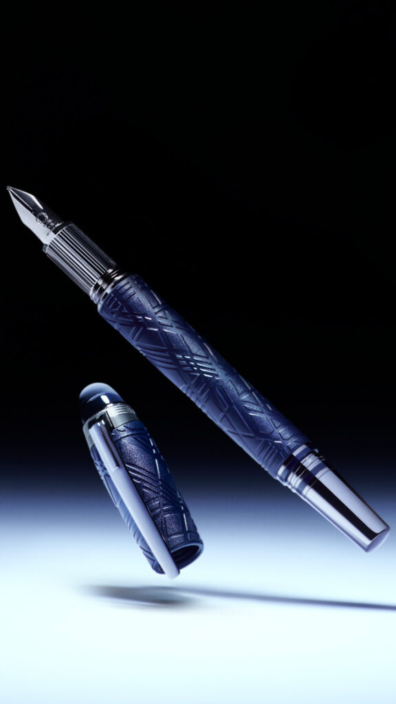 Starwalker SpaceBlue olha além do planeta Terra e se volta para as estrelas e a galáxia. Futurista, esta edição traz um novo visual para a tampa e o corpo de resina, com um design que lembra as intrincadas estruturas do Padrão Widmanstätten, uma das criações mais hipnóticas da natureza. As peças metálicas são revestidas em rutênio escuro, acompanhadas pela resina preciosa fosca de azul profundo, lembrando os tons de um céu estrelado. A cúpula transparente na parte superior da tampa, sobre a qual flutua o emblema Montblanc, acompanha a cor azul profundo.