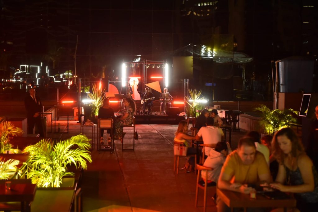 Para completar a experiência gastronômica e a vista da cidade, músicos da cidade tocam jazz, blues, pop e R&B. O rooftop oferece também aos visitantes uma exposição imersiva que conta a história do Brasília Shopping e homenageia o arquiteto renomado Ruy Ohtake. A mostra inclui o processo artístico das obras da campanha de aniversário do centro de compras, desenvolvidas por cinco jovens artistas brasilienses.