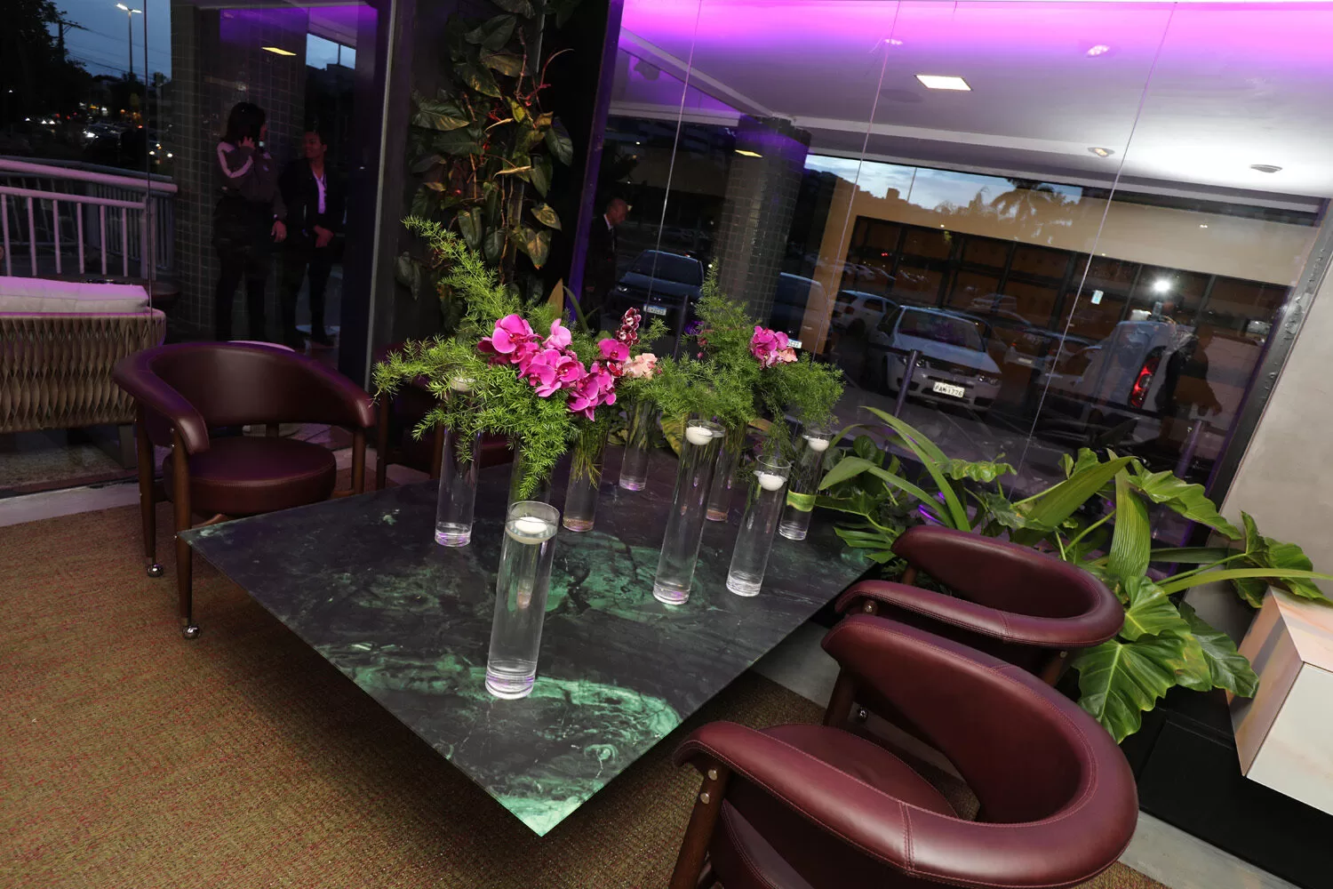 Complementando o cenário, a decoração da noite levou a assinatura de Rodrigo Resende, da Magia das Flores, que criou composições florais elegantes e contemporâneas, reforçando a atmosfera refinada do evento. A Sama Mobiliário Externo marcou presença com seus móveis compondo o espaço trazendo conforto para os convidados.