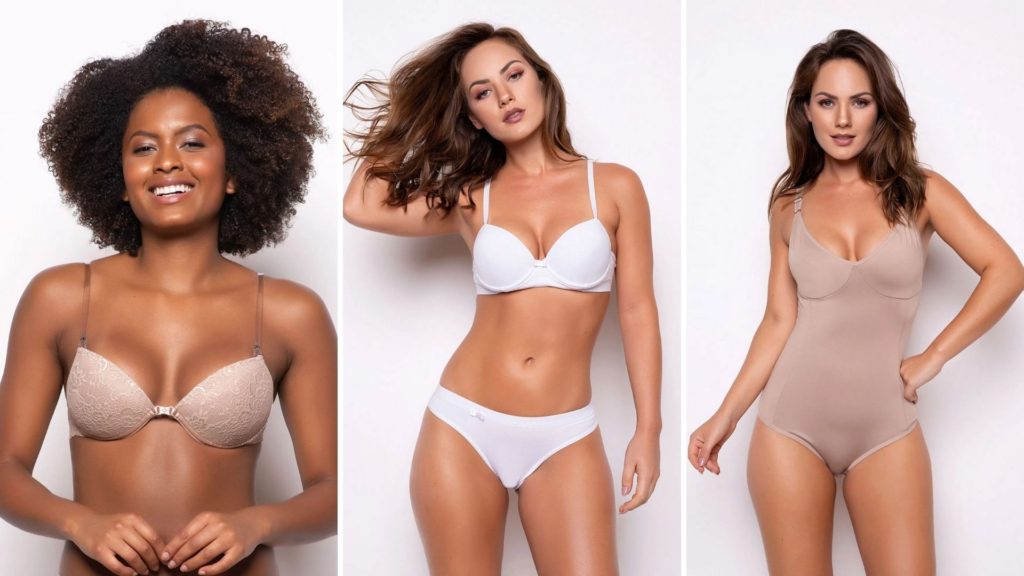 O mesmo vale para o nude, que são aqueles que imitam a cor da pele. Apesar de oferecer baixo contraste e, por muito tempo, ter sido encarado como peça extremamente básica, sem nenhum fator sexy, hoje em dia é fácil encontrar lingeries nudes que apelam pelo lado sensual. Alguns modelos, como o próprio balconet, conseguem trazer sensualidade facilmente, independente da cor.