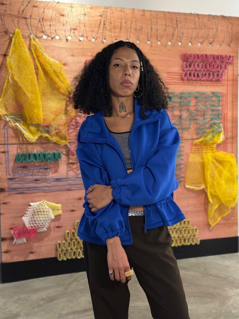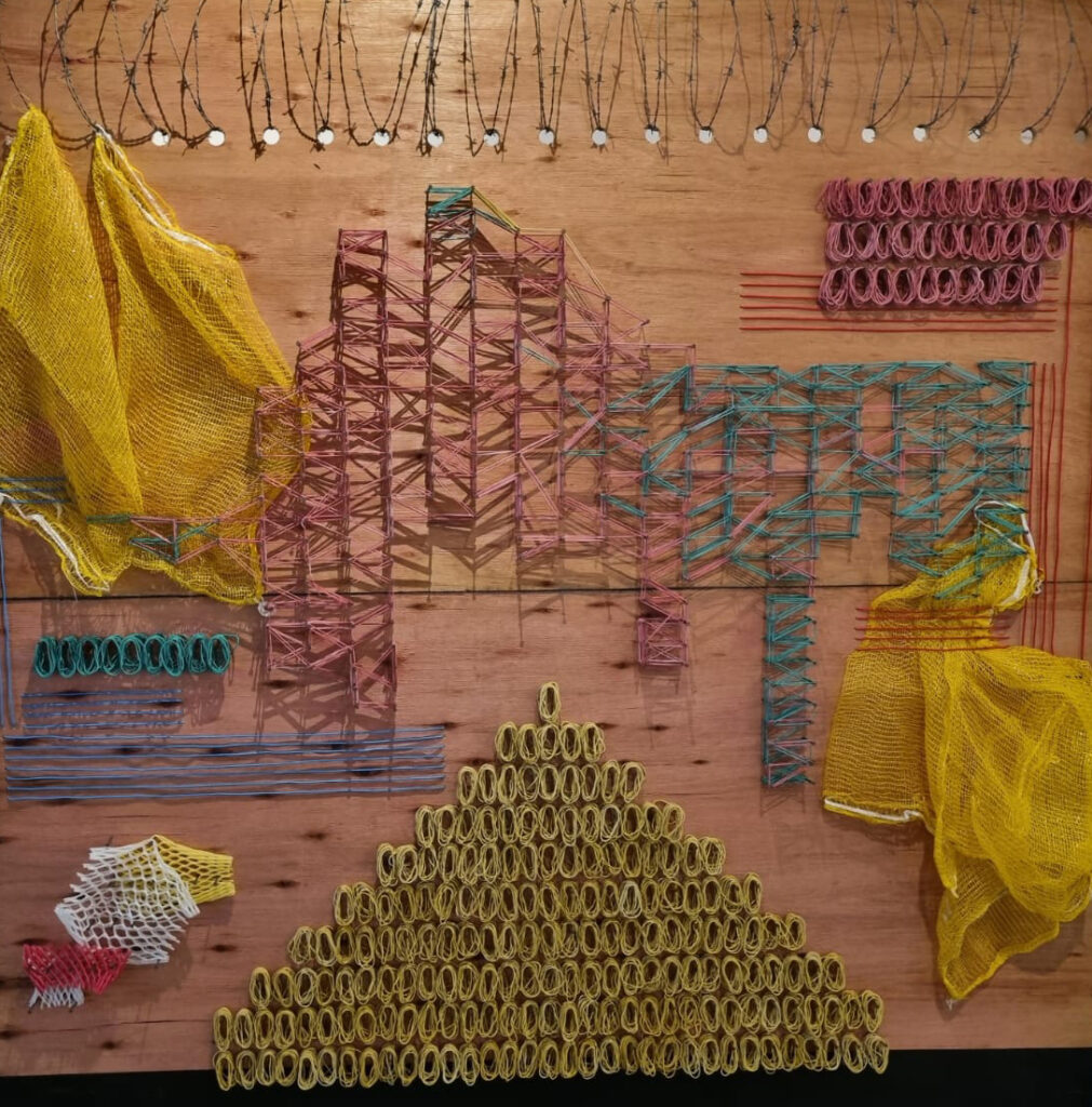 Mayara Trindade Villena, vulgo AYA, mulher negra, nasceu e se criou em Ceilândia Sul. Graduada em Artes Visuais pela Universidade de Brasília (UnB), seu trabalho caminha em diversos segmentos: fotografia, fotomontagem, vídeo arte, colagem, gravura, performance e pintura. E a partir do encontro de linguagens surge o que chama de “pintura- instalação”, nomeado assim, por fazer arranjos com objetos de descarte nas obras, buscando tratar sobre o que consiste à margem social em diferentes níveis.
