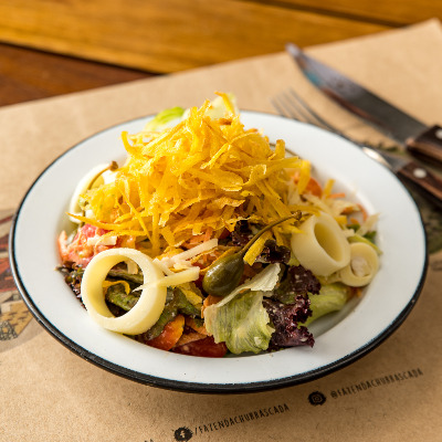 Você já comeu mandioca palha? Essa variação da famosa batata palha é um dos ingredientes da apetitosa Salada Juliana (R$38) da Fazenda Churrascada Brasília, localizada no Setor de Clubes Sul. O prato contém um mix de folhas, cenoura ralada, queijo parmesão, tomate sweet, mandioca palha, palmito em conserva e o famoso molho Juliana de mostarda Dijon.