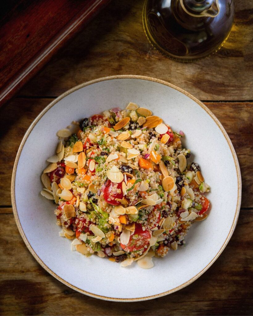 Colorida, instagramável e deliciosa. Essa é a queridinha salada do restaurante Pobre Juan, que também fica no Shopping Iguatemi. Ela traz uma saborosa junção de quinoa com tomate cereja, cenoura, cebola roxa, abobrinha, hortelã, alface americana, uva passa, amêndoas, azeite e limão siciliano. Sua porção custa R$ 58.