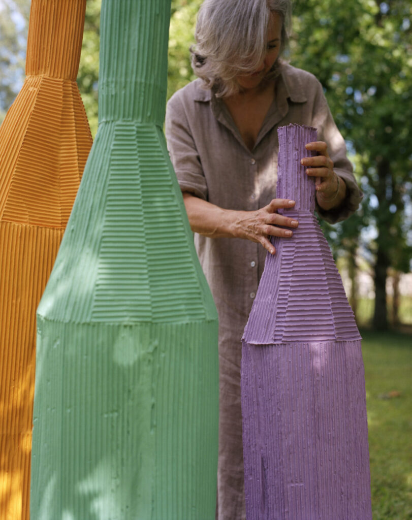 Para Paola Paronetto, a criação de cores é como uma jornada. Inspirada na natureza, ela mistura pigmentos de forma intuitiva, buscando o equilíbrio estético. A luz do dia desempenha um papel importante em seu trabalho, já que ela deseja que sua obra de arte abrace naturalmente a luz, em vez de apenas refletir. Isso ecoa perfeitamente a criação do primeiro champagne rosé blend: a busca intuitiva por uma cor sem compromissos.