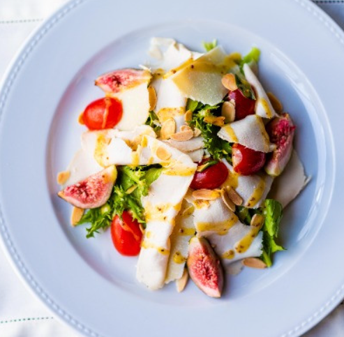 Uma das opções de entradas que carregam a essência italiana é o clássico Prosciutto e Mozzarella (foto acima) (R$ 96), uma porção de presunto de Parma e mussarela de búfala. Já a Insalata di Pollo e Fichi (R$ 89) oferece uma combinação deliciosa de folhas frescas, lâminas de frango orgânico, figo, tomate e amêndoas, tudo harmonizado com um molho de mostarda e mel.