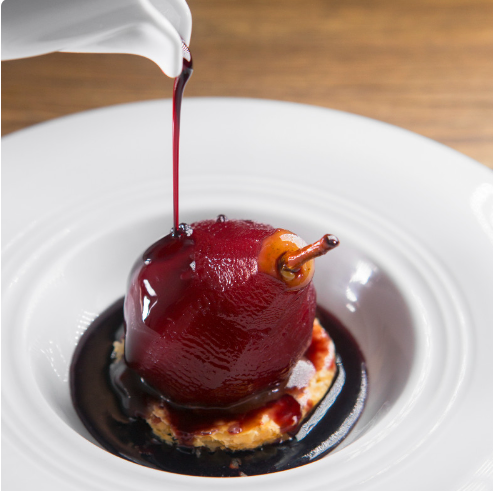 Encerrando a experiência culinária com um toque doce, a Pera al Nebbiolo (R$ 49) apresenta peras cozidas em vinho tinto e especiarias, servidas sobre uma massa folhada crocante e acompanhadas de creme de avelã.