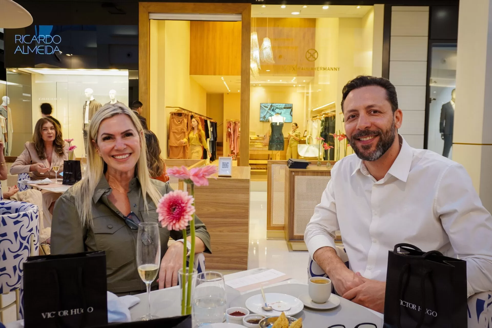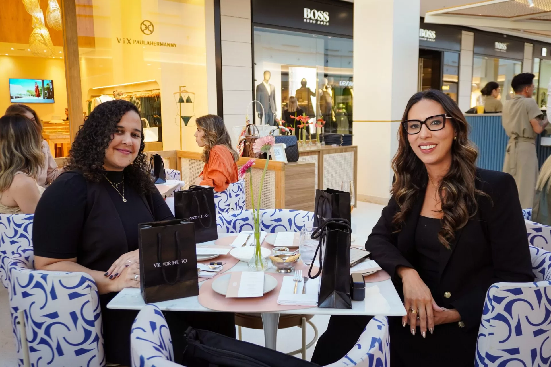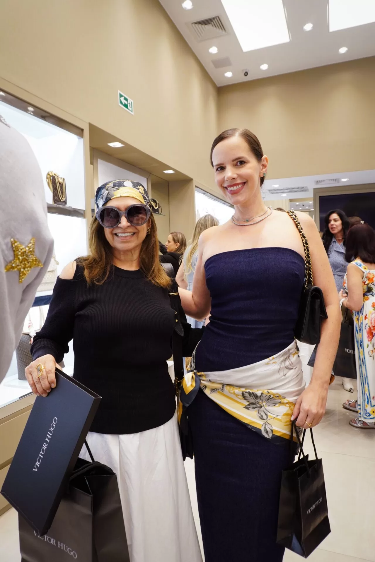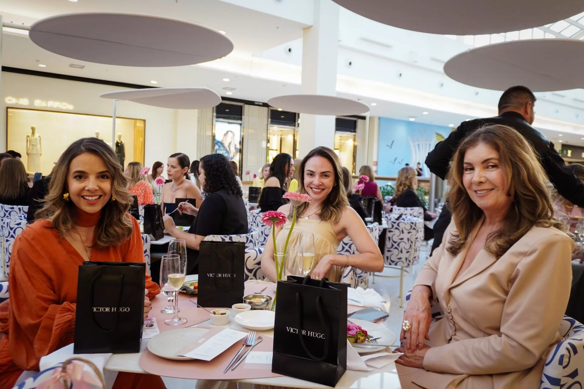 Após a apresentação, as convidadas, reunidas pelo promoter Tiago Correia, seguiram para conhecer a nova loja da marca no Iguatemi. Em um gesto de delicadeza, cada participante recebeu um lenço colecionável Victor Hugo. A ação ainda trouxe um toque de solidariedade: Correia incentivou as presentes a doarem um lenço de seus acervos pessoais, destinado a pacientes em tratamento contra o câncer.