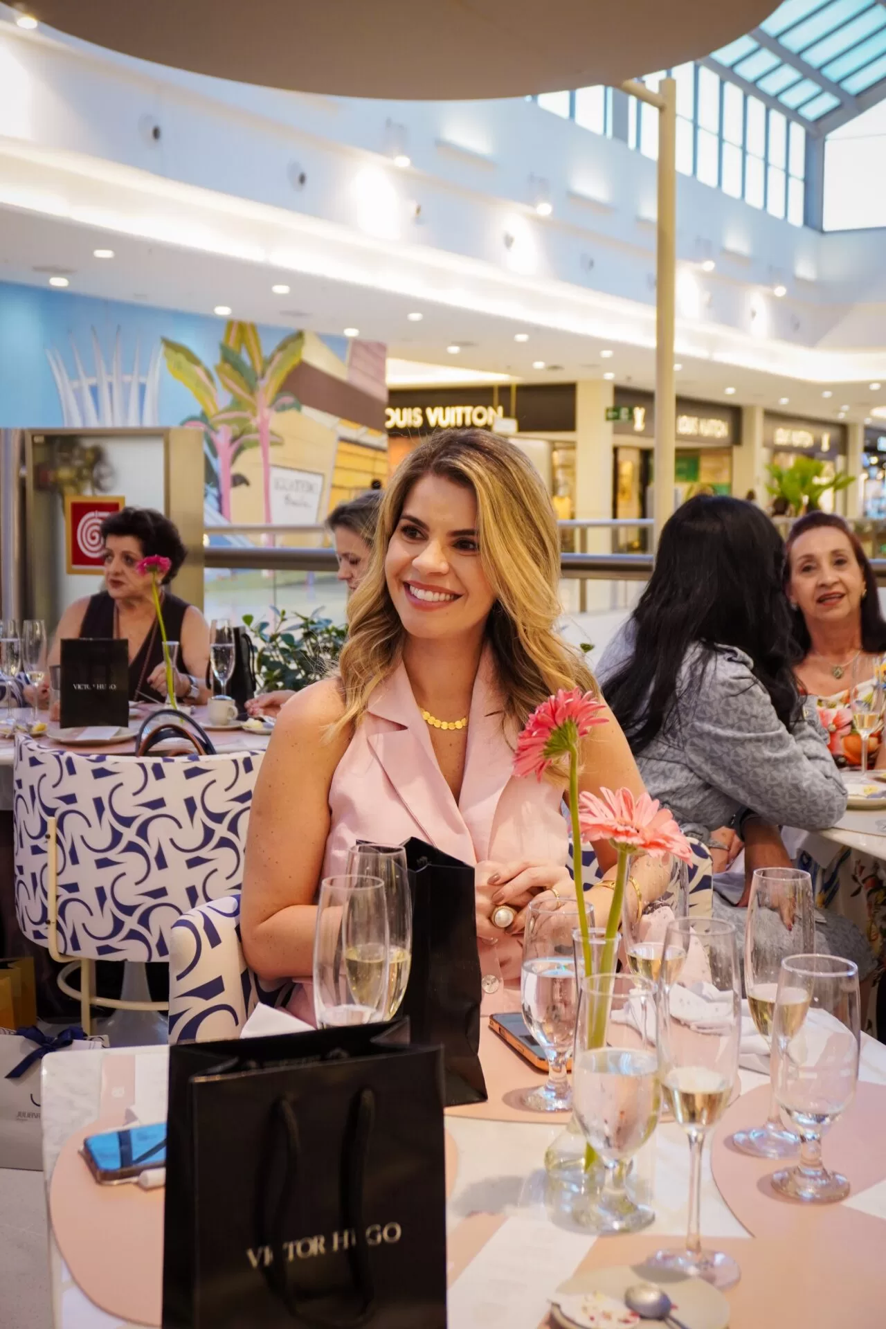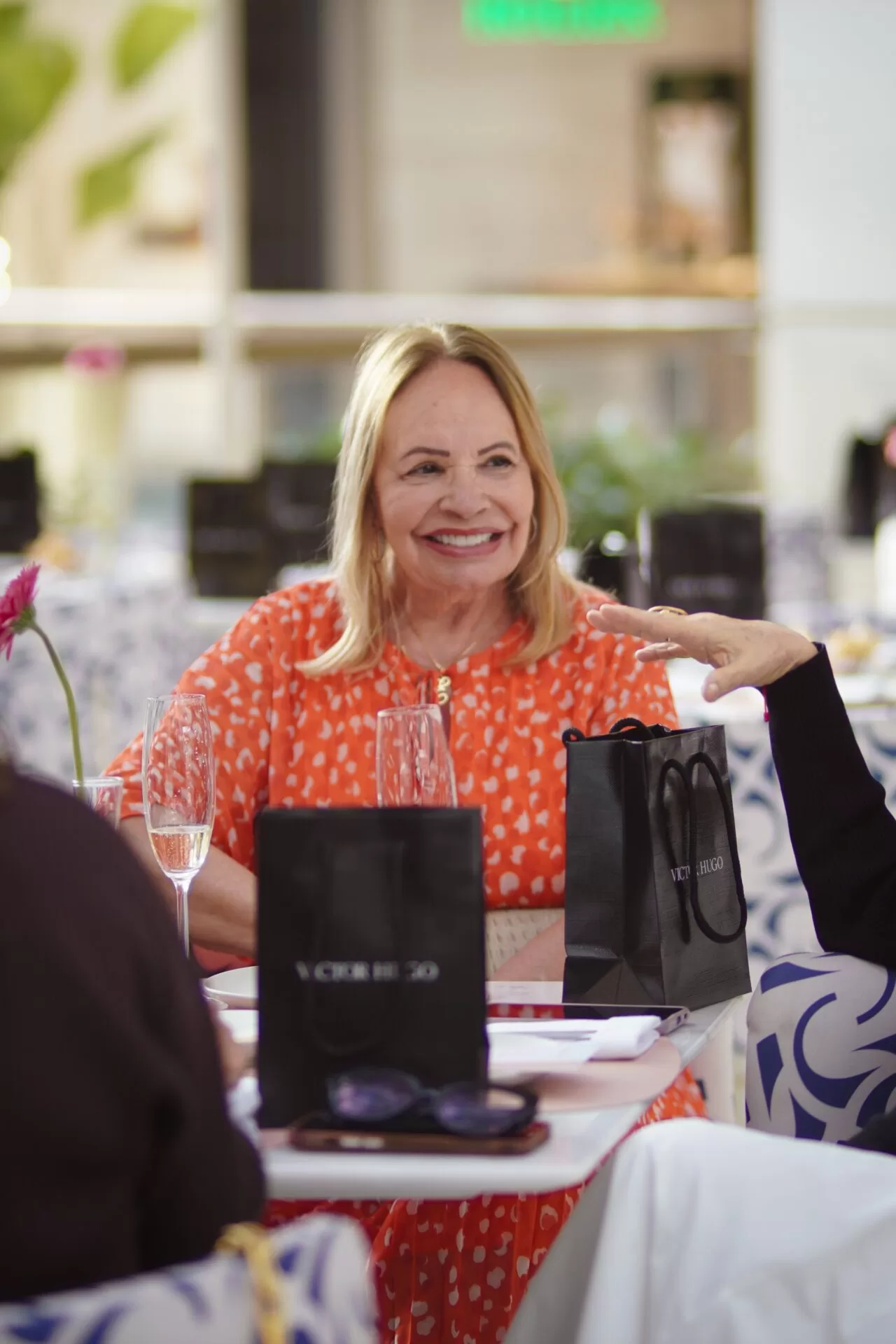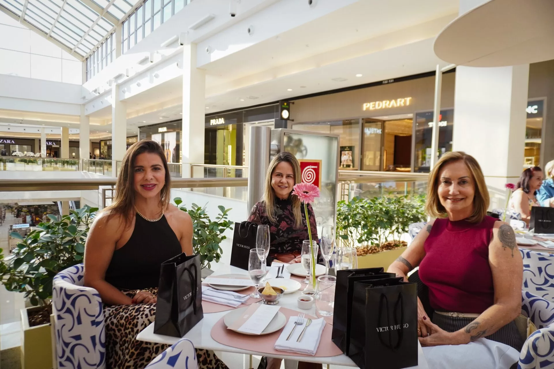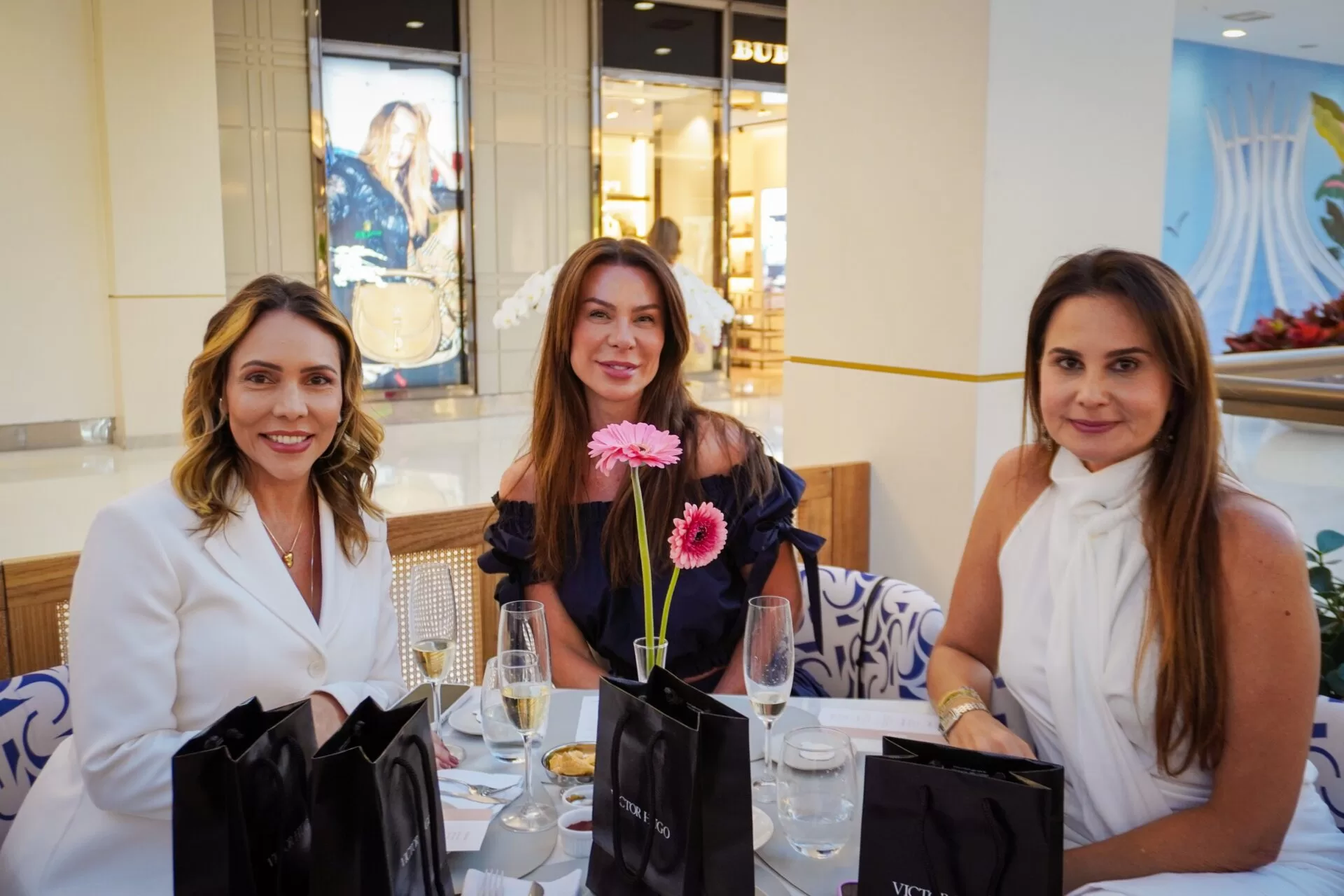 Após a apresentação, as convidadas, reunidas pelo promoter Tiago Correia, seguiram para conhecer a nova loja da marca no Iguatemi. Em um gesto de delicadeza, cada participante recebeu um lenço colecionável Victor Hugo. A ação ainda trouxe um toque de solidariedade: Correia incentivou as presentes a doarem um lenço de seus acervos pessoais, destinado a pacientes em tratamento contra o câncer.