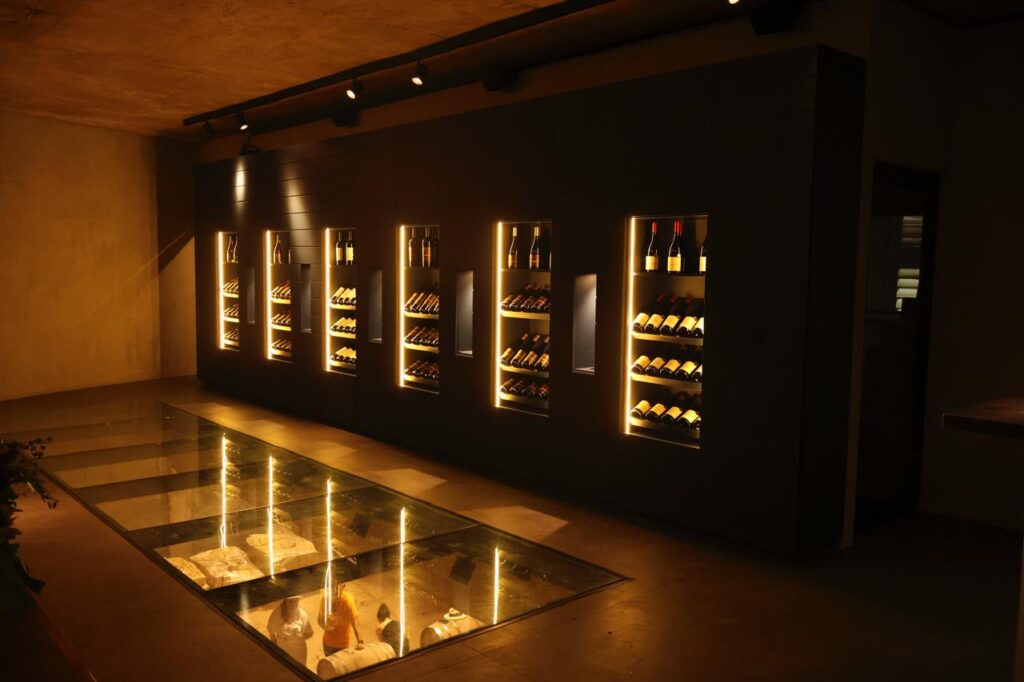 Logo após, os visitantes descem à cave subterrânea onde estão as barricas de carvalho francesas e americanas, local em que os vinhos passam pelo processo de envelhecimento e maturação. Nessa etapa, é degustado o quarto vinho, o Syrah da linha Alvorada, um vinho que estagiou 12 meses em barricas de carvalho, acompanhado de uma tábua de queijo colonial, salame artesanal, cesta de pães e azeite.