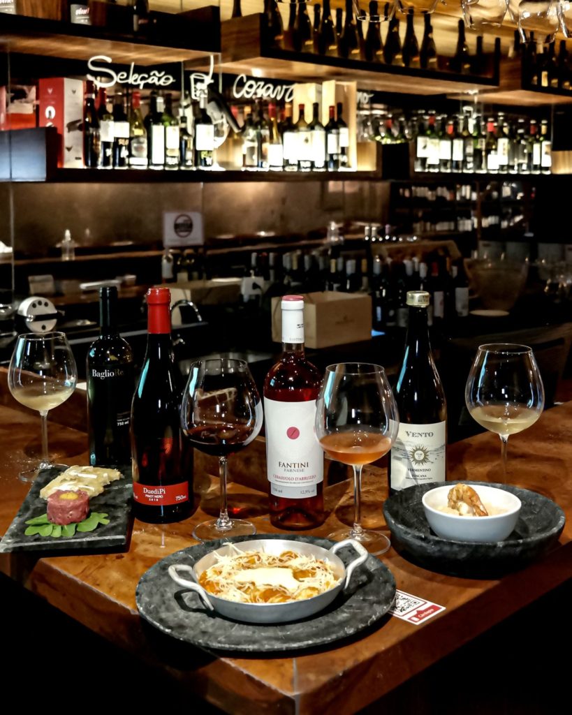 No menu da casa, gastronomia Italiana, com pequenas porções para que o cliente possa provar e harmonizar diferentes pratos com vinhos variados. Entre as opções do cardápio, tábua de frios, com seleção de queijos e frios nacionais e importados acompanhados de torradas e geleia da casa, os arancinis e as burratas, que são os carros chefe se falando de entrada. Já os pratos principais mais famosos são os risotos e o spaghetti Carbonara com gema mole. Entre as sobremesas mais pedidas estão a torta de chocolate com calda de Nutella e o Brie no forno com mel e amêndoas.