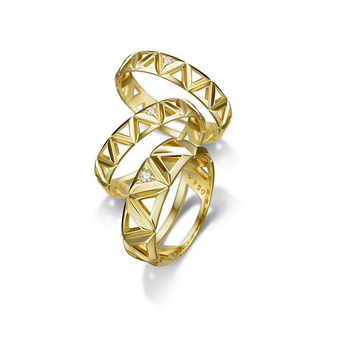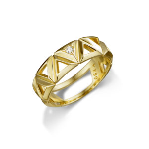 Com ar moderno e sofisticado, a nova coleção é composta por anéis, pulseiras, piercing e dois brincos, sendo uma versão em argola maior e outra menor. As joias em ouro amarelo ganham pontos de diamante em suas superfícies vazadas.