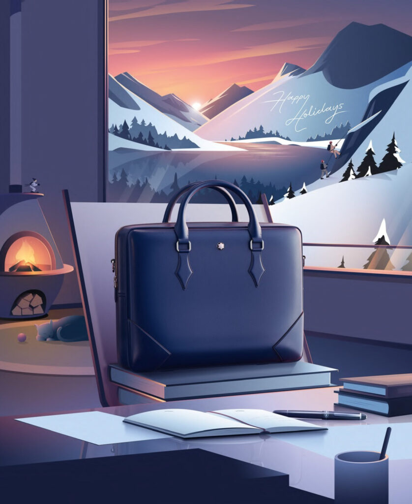 Na decoração das lojas, uma paisagem de inverno pinta o cenário de um dia perfeito para as comemorações de fim de ano. Com visuais inspirados no terreno deslumbrante do Mont Blanc, a Maison convida a vivenciar a beleza da natureza, junto de pessoas especiais. Para a Montblanc, o período de festas é uma ocasião cheia de pequenos acontecimentos inspiradores a serem descobertos, no lugar certo e com a melhor companhia.